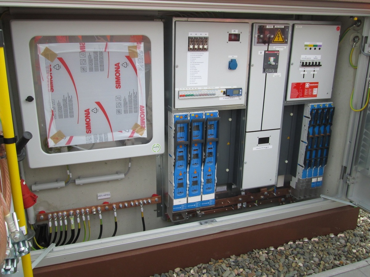 Die Bereitstellung der 50 Hz-Spannung für die bahntechnischen Ausrüstungen erfolgt über 17 Mittelspannungs-Trafostationen (TST) und 7 Niederspannungs-Zähleranschlusssäulen (ZAS).