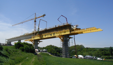 In einem ehemaligen Tagebau muss der Boden dynamisch verdichtet werden. Die Fahrbahnträger entstehen als Spannbetonüberbau abschnittsweise von den beiden Endpunkten, den Widerlagern her. So genannte Vorschubgerüste arbeiten sich dabei taktweise über das Tal. Vorauseilend werden die Pfeiler und Bögen errichtet, auf die sich dann der fertige Überbau stützt.