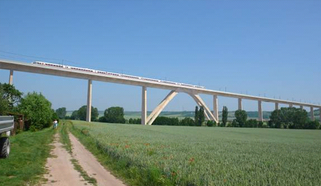 The Unstrut Viaduct is being constructed based on state-of-the-art engineering skills. The track runs on a series of jointless, bearingless reinforced concrete girders. Special solutions at the ends of these girders allow for temperature deformation.