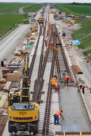 | Fahrbahn (Gleistragplatten und Schiene) | 87 km fertig |