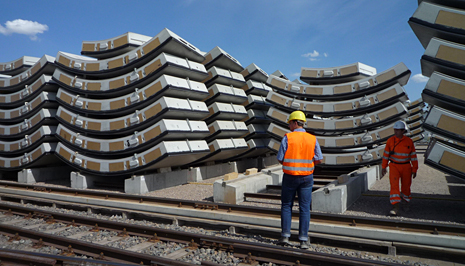 Der Vorrat beträgt je nach Erfordernis bis zu ca. 1000 kompletten Ringen. Dies entspricht ca. 7000 einzelnen Tübbingsteinen.