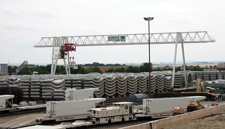 Für die beiden Tunnelröhren wurden ca. 48.000 Tübbinge an Ort und Stelle in einer Feldfabrik hergestellt, das sind täglich 16 Tübbingringe.