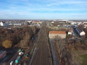 Luftbilder und Bodenaufnahmen zum Neubau des Haltepunktes Leipzig Essener Straße